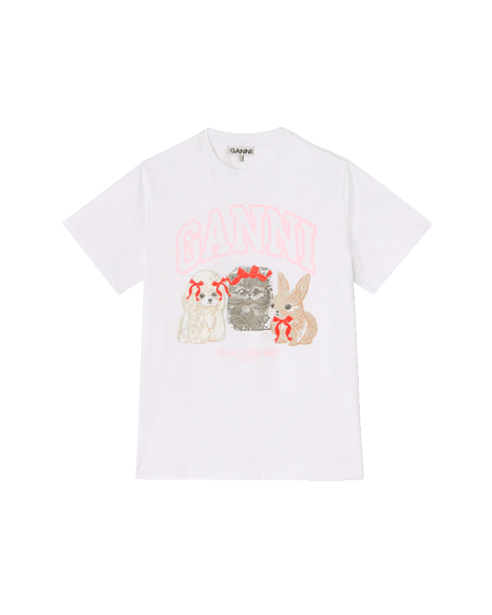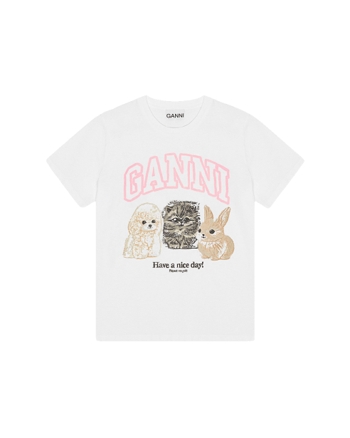 New XS S M L Quick view Ganni T4375 Bacis Cotton Jersey Animals Relaxed T-Shirt Bright White DKK 799