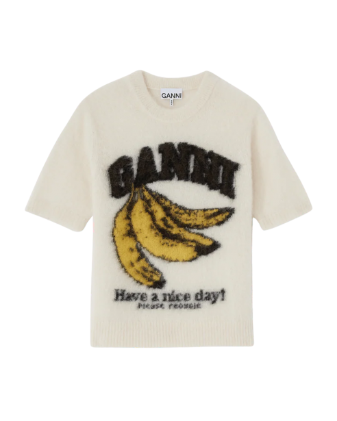 Ganni A1070093 Brushed Alpaca Graphic T-Shirt Egret