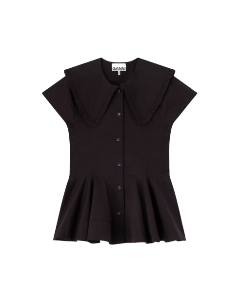 Ganni A1040093 Stretch Cotton Peter Pan Collar Shirt Black