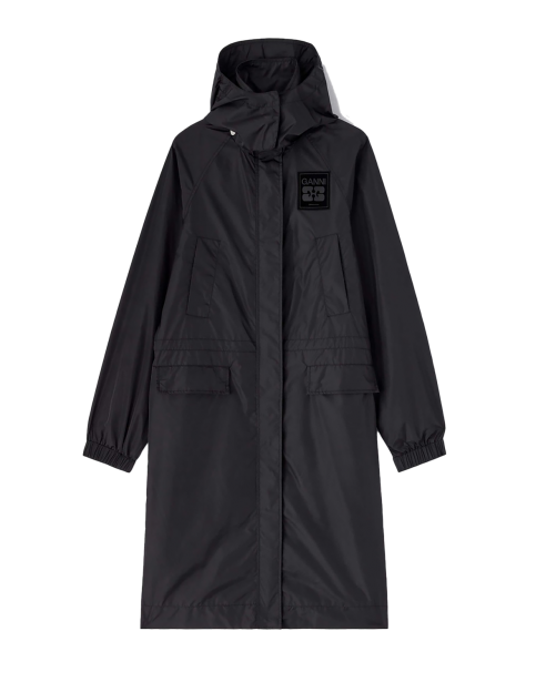 Ganni A1010080 Flyweight Nylon Long Parka Print Black