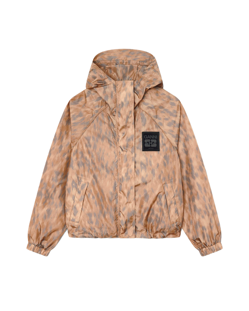 Ganni Printed Flyweight Nylon Hooded Jacket Printed Burro