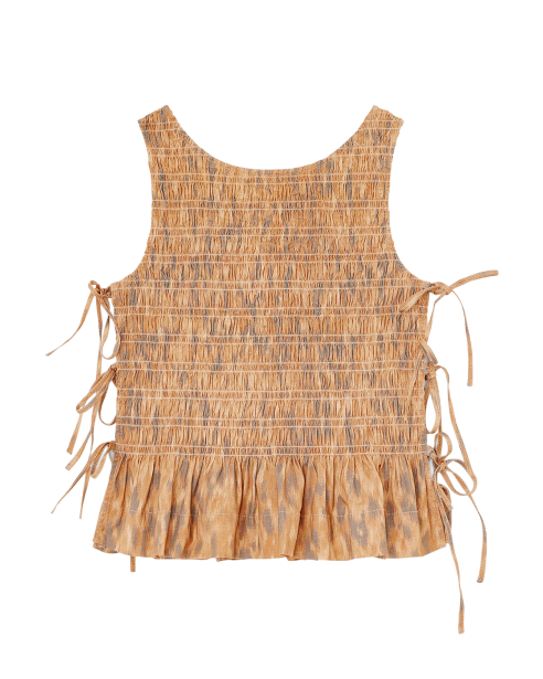 Ganni Printed Stretch Cotton Smocked Tie String Top Burro