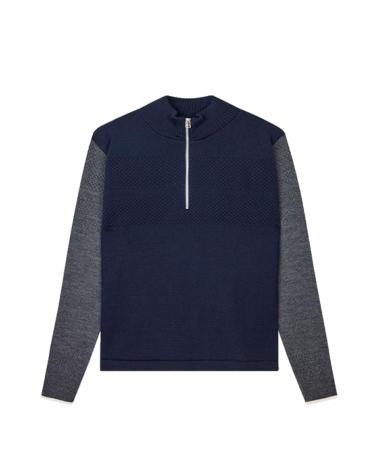 Mads Nørgaard Wool Klemens Half Zip Knit Parisian Night/Charcoal Melange