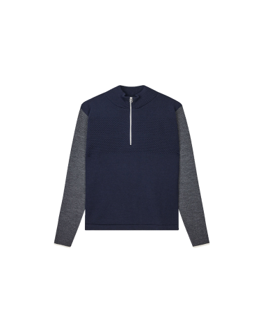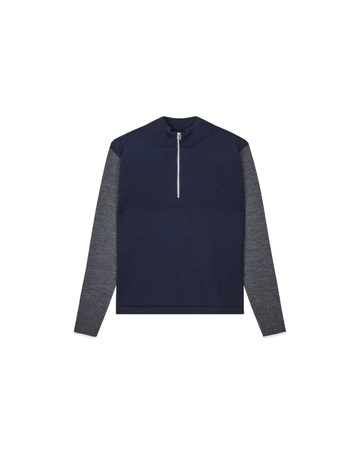 Mads Nørgaard Wool Klemens Half Zip Knit Parisian Night/Charcoal Melange