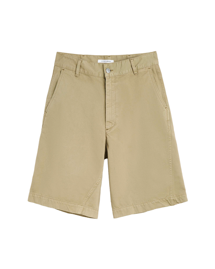 SUNFLOWER Wide Twist Chino Shorts Khaki