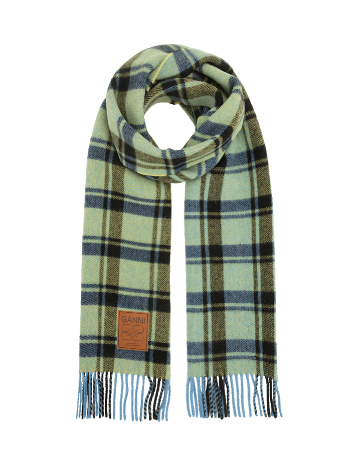 - Style: Ganni A6935 Double Face Wool Check Scarf