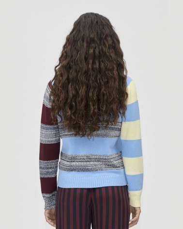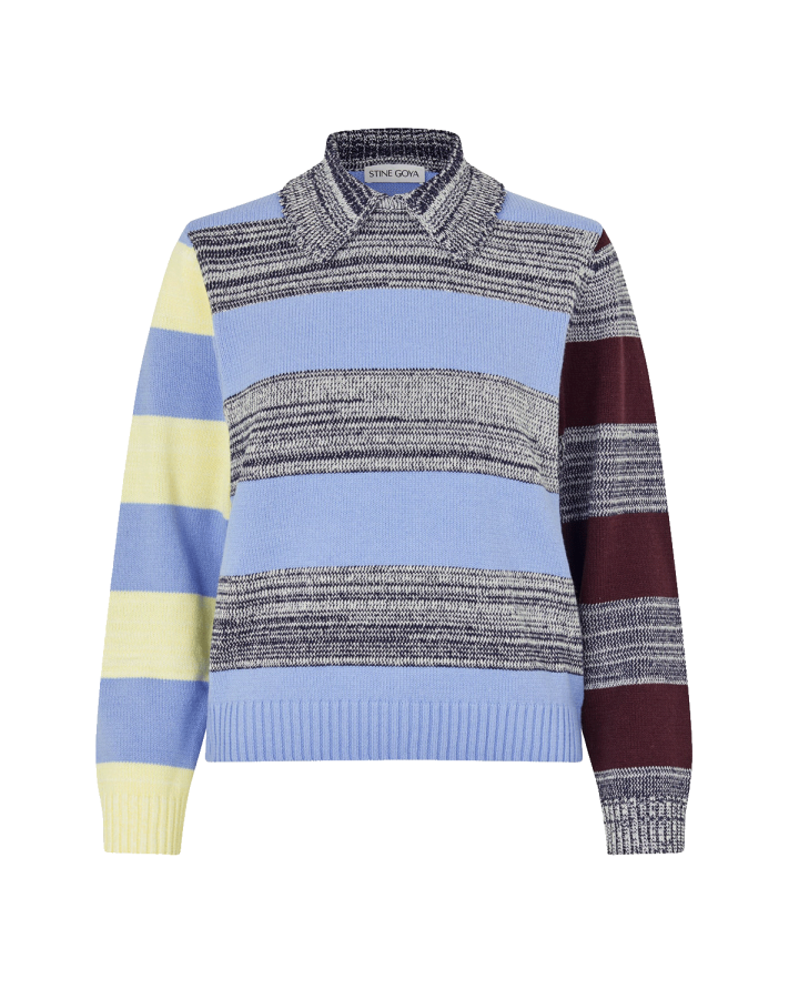 Stine Goya Mix Stripe Polo Collar Sweater Multistripes Blue Mix