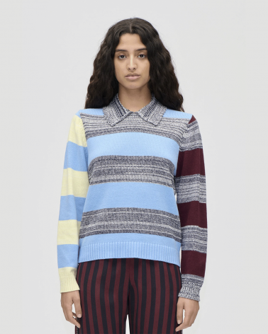- Style: Stine Goya Mix Stripe Polo Collar Sweater