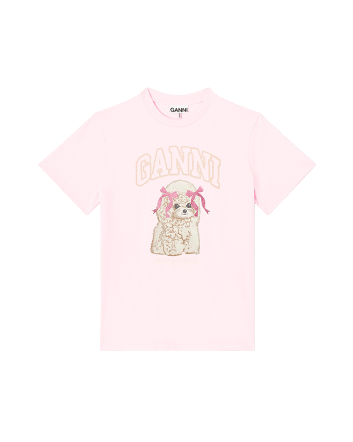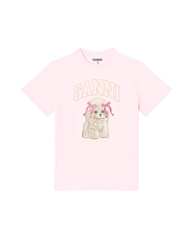 Ganni 1050062 Bacis Cotton Jersey T-Shirt Chalk Pink