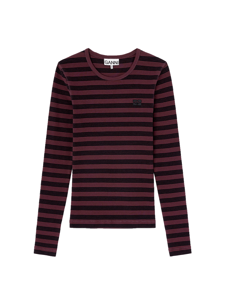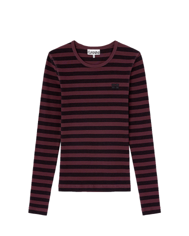 Ganni A1050066 Soft Cotton Stripe Rib Longsleeve Chocolate Plum