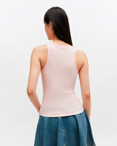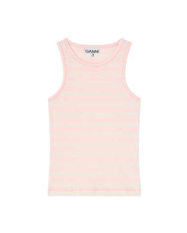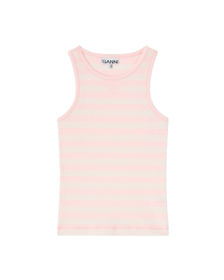 Ganni A1050049 Soft Cotton Rip Tank Top Chalk Pink