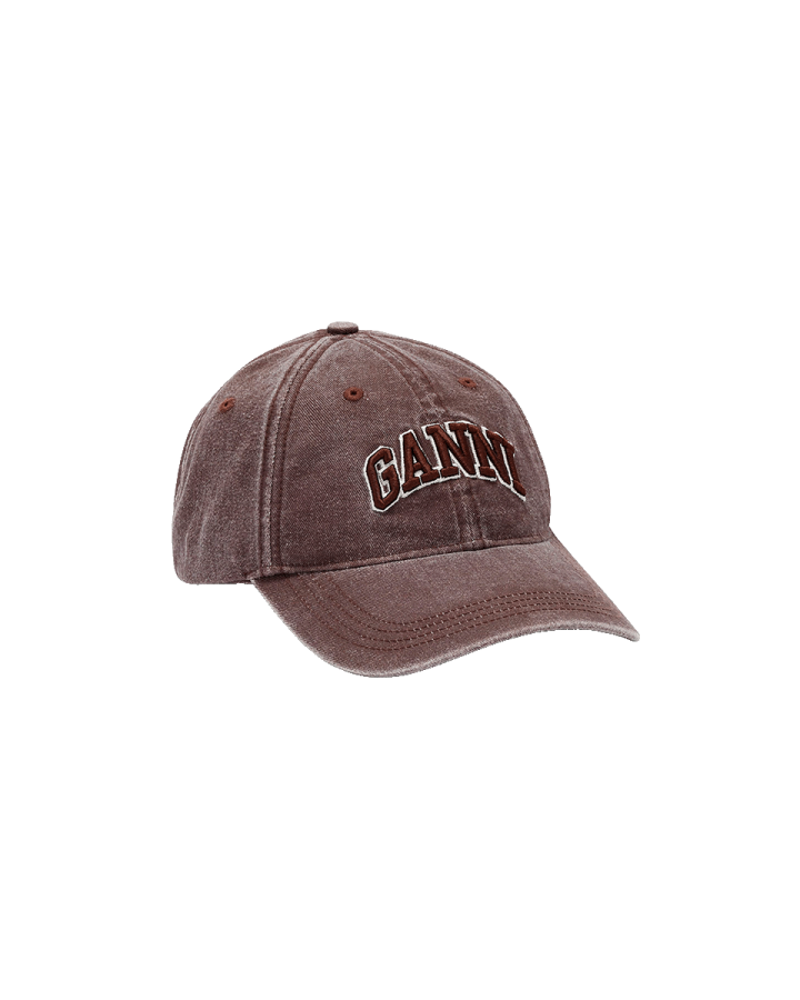 Ganni B3020105 Washed Cotton Canvas Cap Chocolate Plum