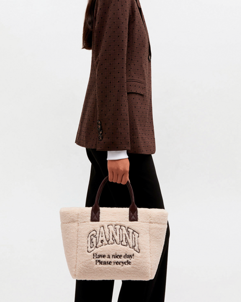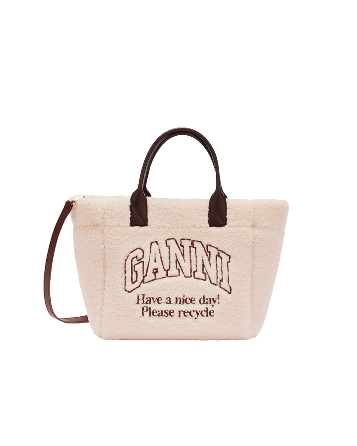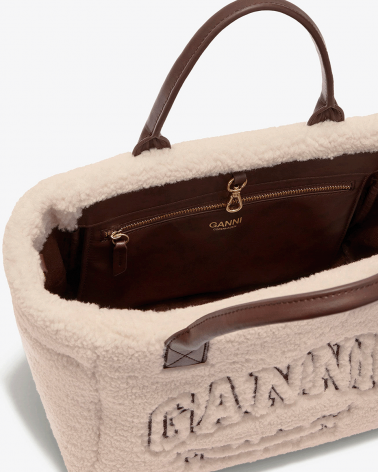 Ganni B2110018 Small Easy Shopper Shearling Egret