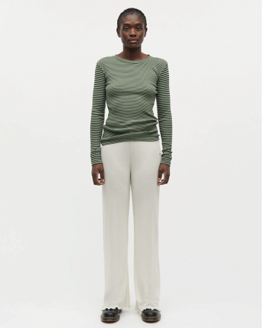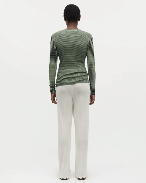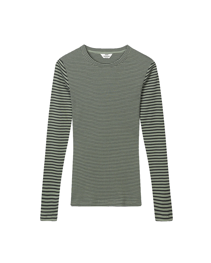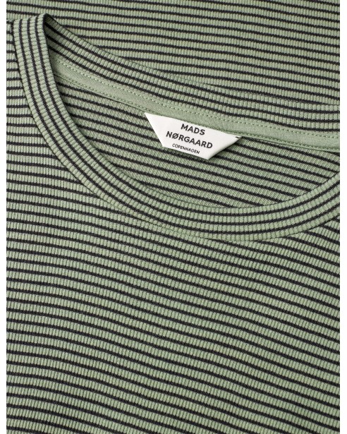 Mads Nørgaard 2x2 Cotton Stripe Tuba Tee LS Sea Spray/Black