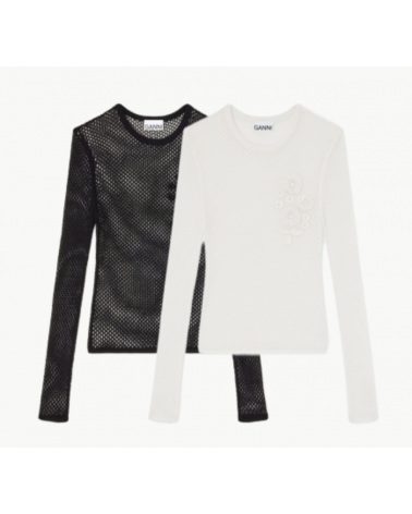 - Style: Ganni A1070231 Mercerized Cotton Mesh Pointelle Longsleeve