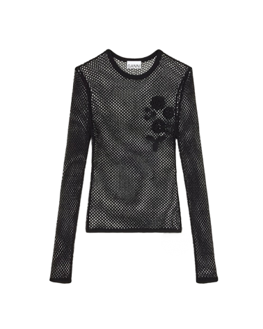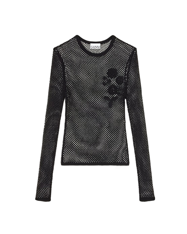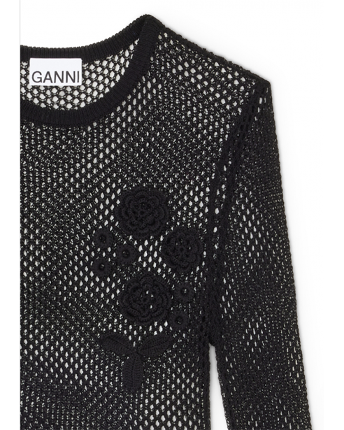 Ganni A1070231 Mercerized Cotton Mesh Pointelle Longsleeve Black