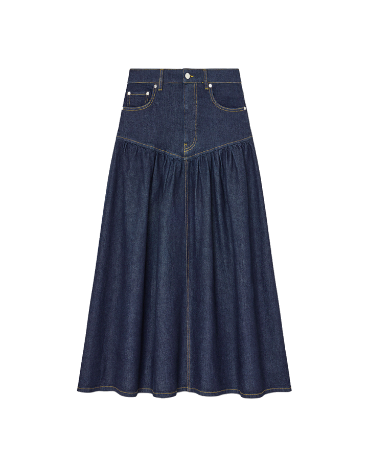 Ganni A1090248 Stretch Denim Long Skirt Rinse