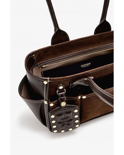 Ganni B2110076 Posy Small Recycled Suede Chicory Coffee Bag